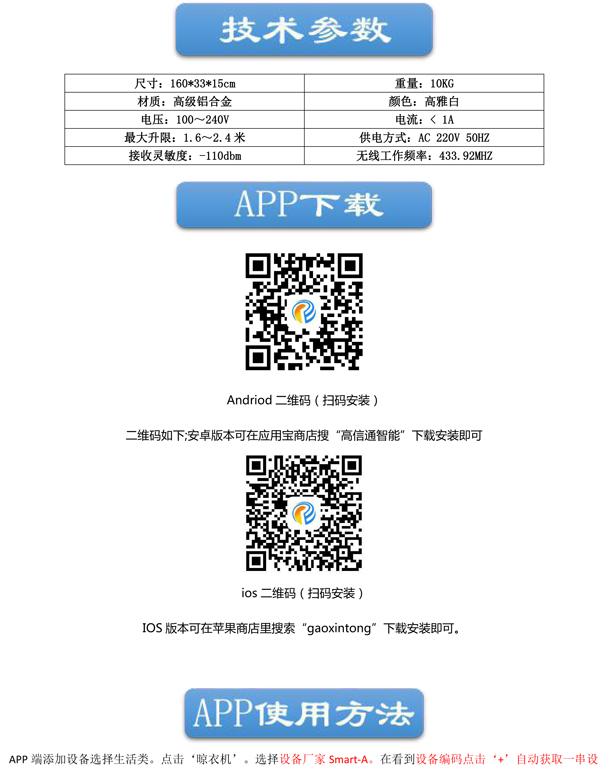 电动晾衣架使用说明书